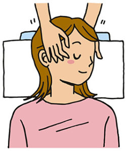 • 擦る(軽擦法・摩擦法):施術の始めや終わりなど、緊張を和らげる場面で使います。
